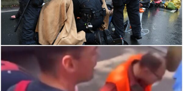 Klimaatactivisten krijsen het uit wanneer ze doorhebben wat het cement met hun handen doet: “Help! Ik zit vast!”