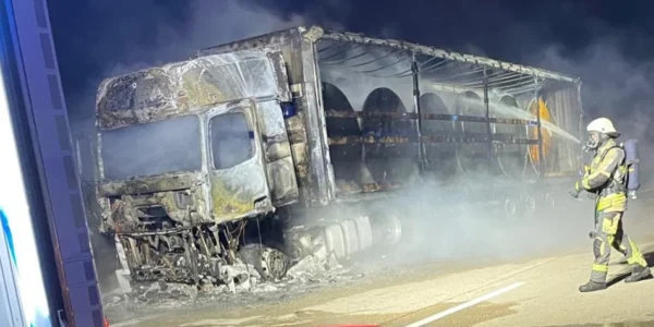 Krasse Szenen mitten auf der A9: Lkw brennt vollständig aus