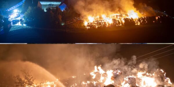 Bedrohliches Feuer neben Kuhstall: Mehr als 1000 Strohballen in Flammen