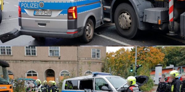 Polizei-Crash in Chemnitz: Streifenwagen nach Unfall völlig verbeult