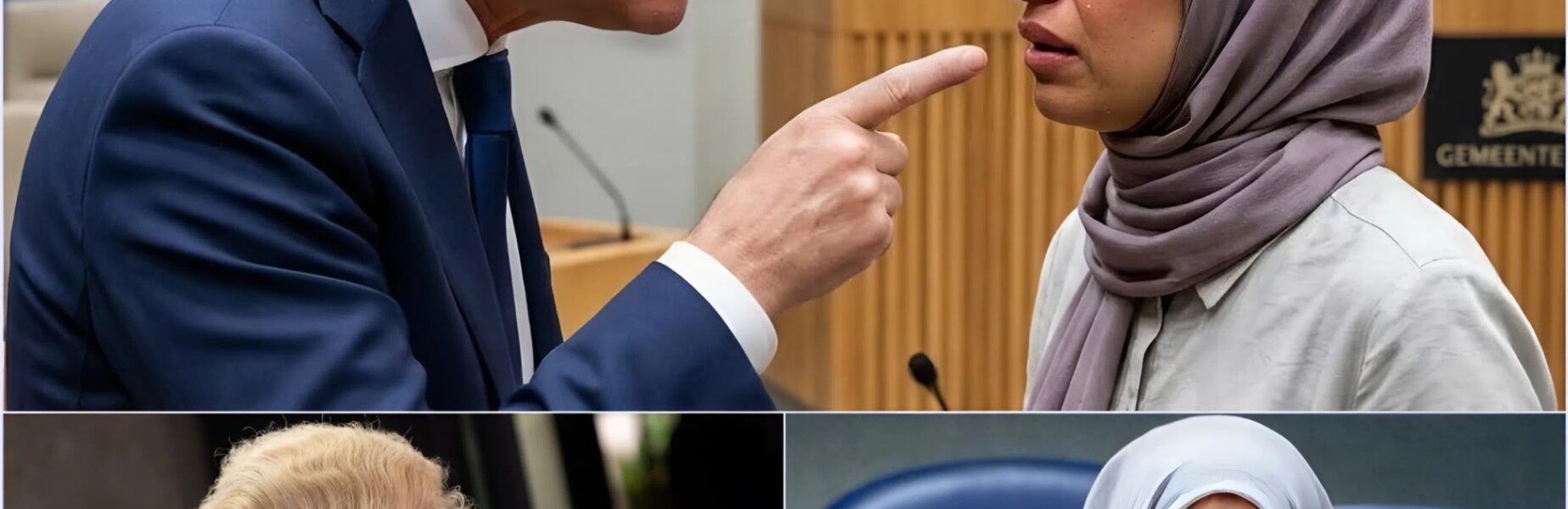 Bouchallikht, zichtbaar verrast door de intensiteit van de aanval, probeerde aanvankelijk kalm te blijven. Ze stond achter het spreekgestoelte en luisterde aandachtig, maar haar lichaamstaal verraadde de druk van het moment. Ooggetuigen meldden dat haar handen licht trilden terwijl de camera’s op haar gericht bleven.