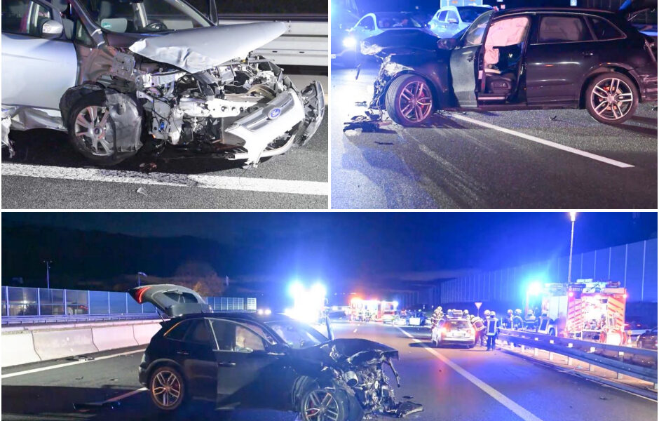 Mindestens drei Menschen wurden bei dem heftigen Auffahrunfall verletzt, mehrere Fahrzeuge erlitten Totalschaden. Trummerteile verteilten sich uber alle Fahrspuren und beschädigten auch nachfolgende Autos. Die Autobahn glich uber mehrere hundert Meter hinweg einem Trummerfeld.