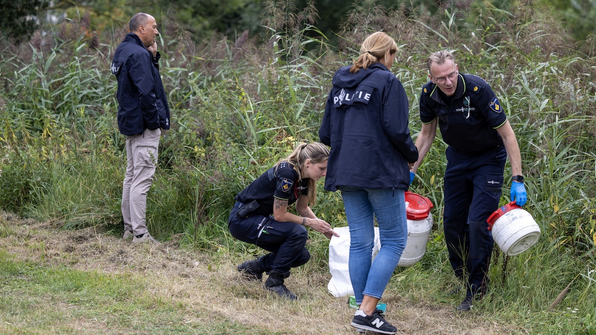 Een verslaggever van persbureau ANP zag dinsdag hoe agenten op het water actief waren. Op een bepaald moment werden twee witte vaten door andere politiemedewerkers weggevoerd. De inhoud daarvan werd overgebracht in een witte envelop, die vervolgens in een politievoertuig werd geplaatst.
