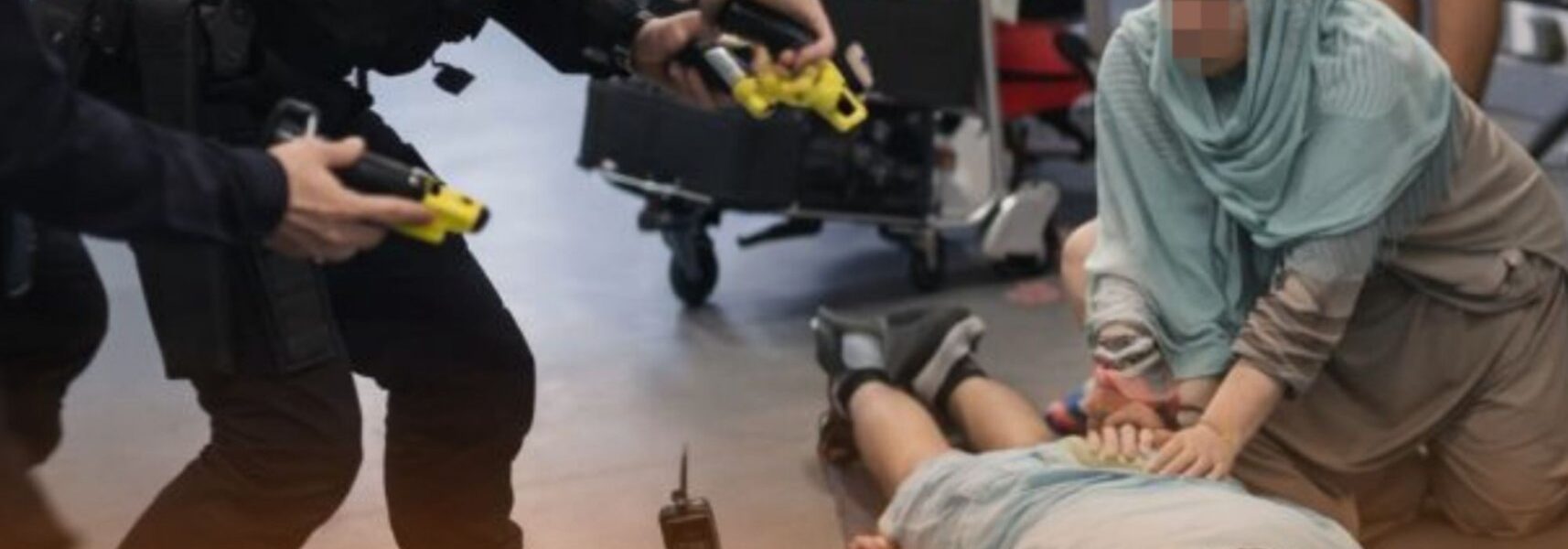 De videobeelden hebben inmiddels veel reacties losgemaakt. Te zien is hoe agenten bezig zijn met het benaderen van meerdere personen in een openbare ruimte van de luchthaven, in de buurt van liften en doorgangen. In één fragment ligt een man op de grond terwijl agenten zich om hem heen bevinden met zichtbare hulpmiddelen die onderdeel zijn van hun standaarduitrusting. Een andere agent beweegt zich vervolgens dichter naar hem toe, wat door veel kijkers als ingrijpend wordt ervaren.