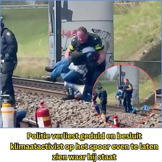 Politie verliest geduld en besluit klimaatactivist op het spoor even te laten zien waar hij staat