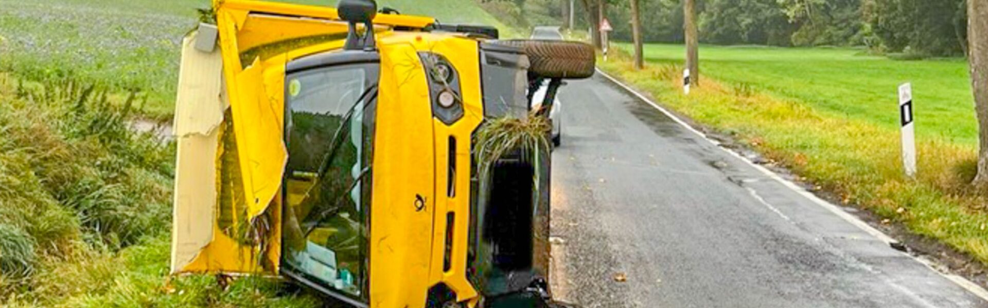 Post auf Abwegen: Paketauto überschlägt sich wegen überhöhter Geschwindigkeit auf Landstraße