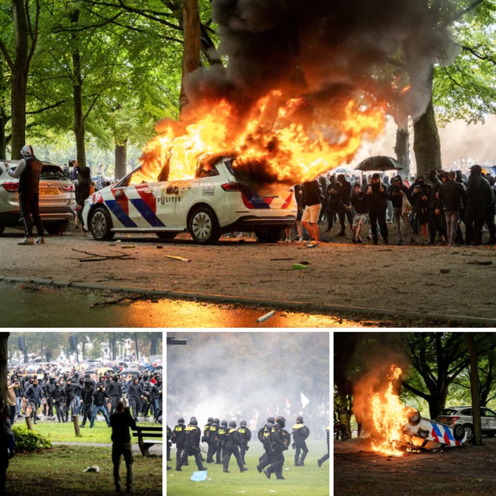 Een demonstratie tegen het asielbeleid in Den Haag, zetel van de Nederlandse regering, is uitgelopen op massale rellen en confrontaties met de politie. Een politiewagen ging in vlammen op en de ordediensten hebben traangas ingezet. De actievoerders trekken intussen door de stad en richten vernielingen aan. Bij het partijkantoor van D66 zijn ramen ingegooid. Verschillende politici hebben al hun afkeer geuit, ook Geert Wilders: “Snoeihard aanpakken dat tuig”, zegt hij op X.