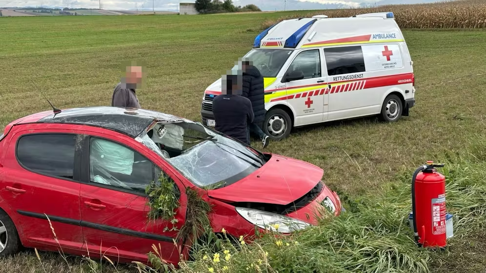 Das Auto überschlug sich dann und kam wieder auf den Reifen zum Liegen. Ersthelfer haben den Unfall gesehen und waren sofort am Unfallort. Sie alarmierten außerdem den Notruf Niederösterreich. Die Person erlitt Verletzungen.