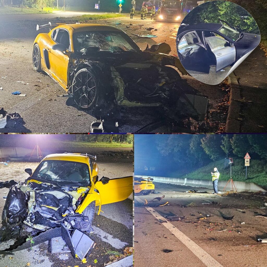 Beteiligt waren ein leistungsstarker Porsche 718 Cayman GT4 RS mit 500 PS sowie ein Mercedes, teilte die Polizei vor Ort mit.