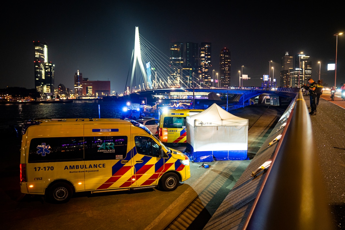 Sprong over Erasmusbrug: politie slaagt er niet in vrouw te stoppen die haar domme daad verricht voor verbijsterde omstanders