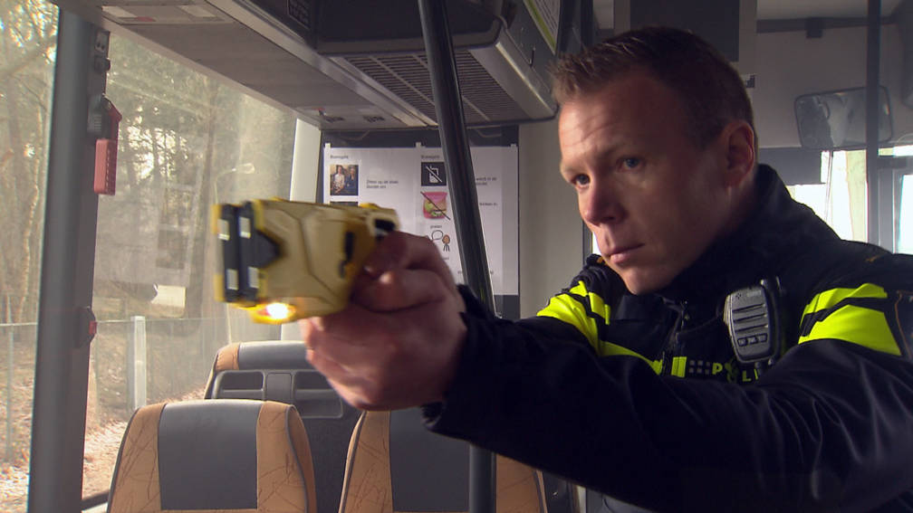 Om het verhaal nog meer pit te geven, moest onze held zijn ultieme wapen inzetten: de taser. Met een zinderende flits en een lichtshow waarmee je een disco zou kunnen verlichten, zorgde de taser ervoor dat de jongen zijn scooter als een verdoofde schildpad achterliet.