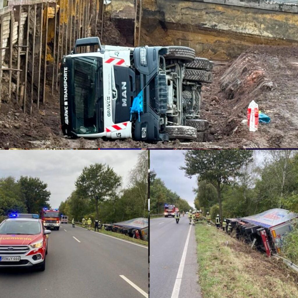 Zwei umgestürzte Lastwagen sorgten binnen 24 Stunden für aufwendige Einsätze von Feuerwehr und Rettungskräften in Niedersachsen und Nordrhein-Westfalen: